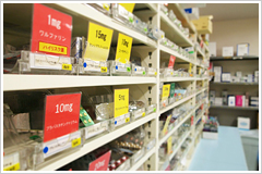 院内すべての薬品の供給を担っています。近年は供給が安定しない薬も多く、その場合の代替案等も提案しています。品質、期限等の管理を行い、安心して薬が使えるようにしています。