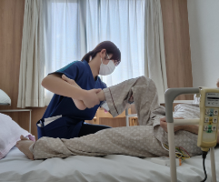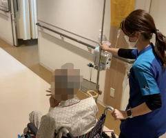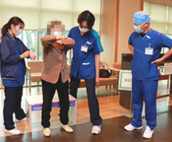 内部疾患では、日常で介助が必要な方に対し、入院前から社会福祉士と情報共有を行い、外来リハビリや介護保険でのサービス等で対応することで、早期退院できるよう支援をしています。入院後は早期離床を行い、環境調整が必要な方は家屋調査を実施することでスムーズな在宅復帰に繋げていきます。
