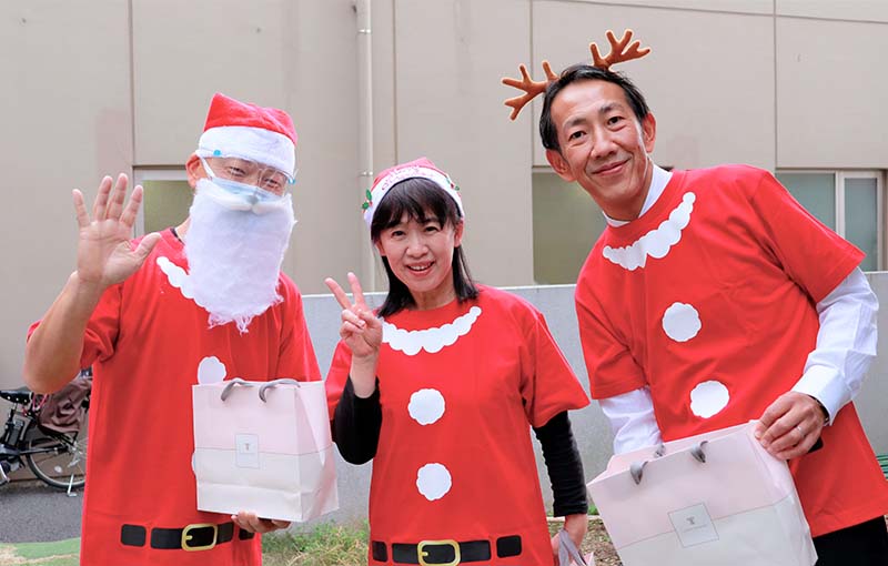 そんな中、少しでも楽しい年末を過ごせるように、ささやかながらくたかけ会費で美味しいお菓子を今回はサンタさん2名にトナカイさん1名で、院内中をまわりながら配りました!ほっこりしますね~^^