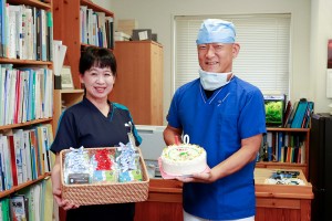 開院10周年に際して、院内でプチ祝賀会を朝礼にて開催しました‼️