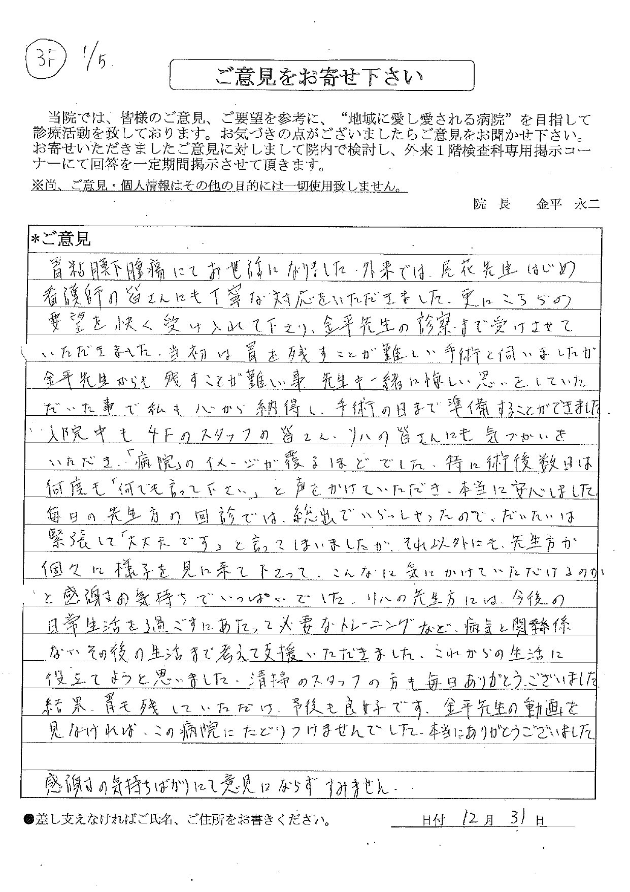 2026年1月 入院患者様からの投書