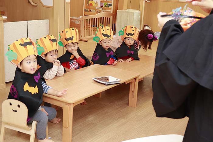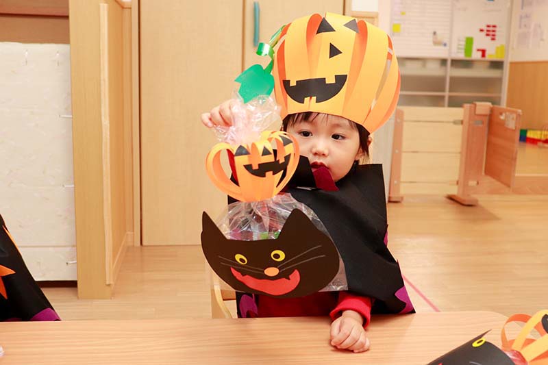 明日はハロウィン、お菓子が貰えるので、子供にとっては嬉しい日ですね!きらきら保育室の園児たちも、かわいい仮装をして楽しんでいました。トリック・オア・トリート!うまく言えたかな?(笑)