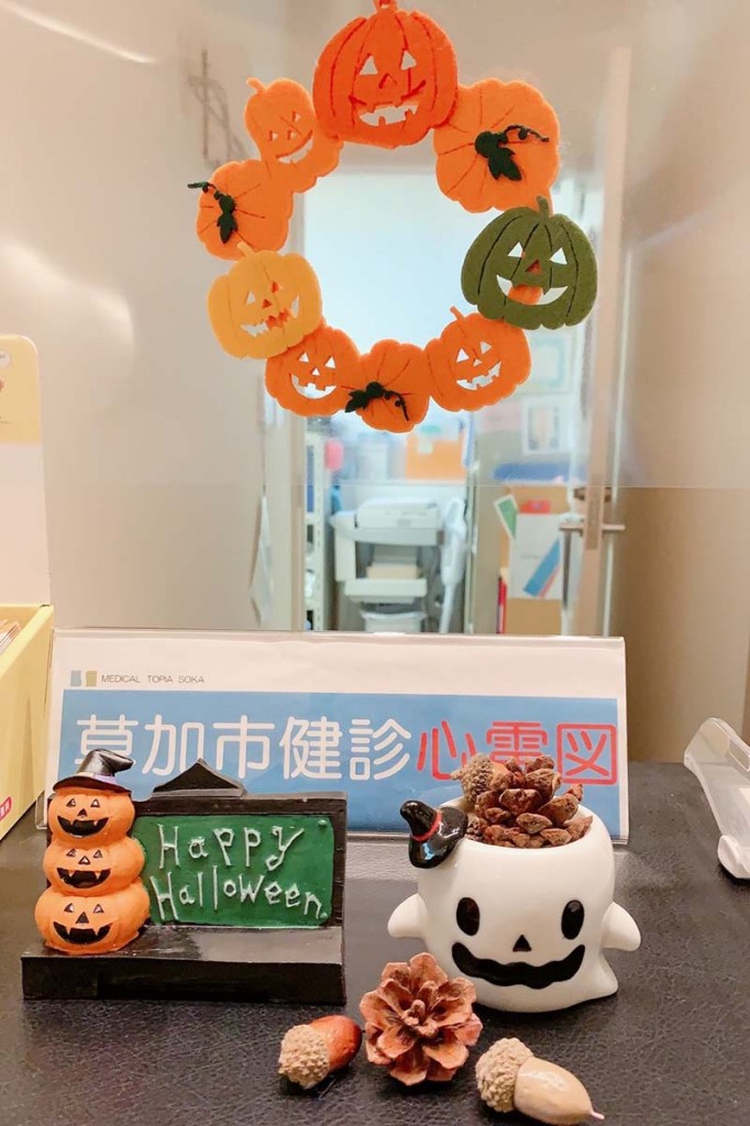 また、当院各部署からのハロウィン飾り付けも合わせてご紹介いたします。いらっしゃった患者さんたち、少しでも癒されるといですね~