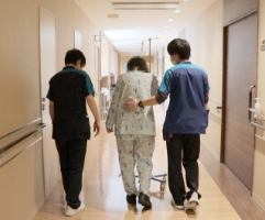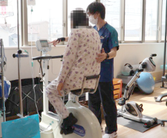 内部疾患では、日常で介助が必要な方に対し、入院前から社会福祉士と情報共有を行い、外来リハビリや介護保険でのサービス等で対応することで、早期退院できるよう支援をしています。入院後は早期離床を行い、環境調整が必要な方は家屋調査を実施することでスムーズな在宅復帰に繋げていきます。
